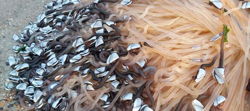 Yerel bir Facebook grubunda paylaşılan fotoğraflar, sahilde bir araya gelen yüzlerce kaz midyesini gözler önüne serdi. Fotoğrafları paylaşan kişi, “Kaz midyesini yıllar önce Kuzey İspanya’da tatmıştım, pahalı bir yiyecektir. Fırtına sonrası sahile vuranlar hâlâ canlıydı,” ifadelerini kullandı.